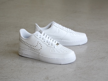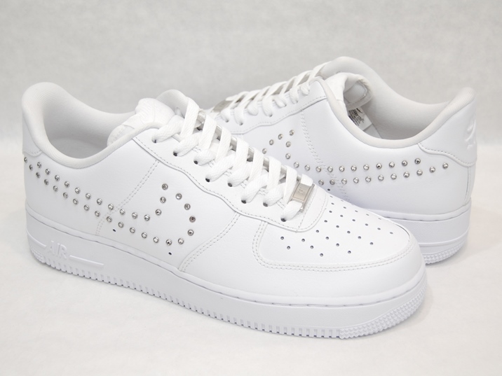 こちらの商品は、ウィメンズのサイズ展開で、つくりが少し小さいので0.5〜1センチ上のサイズをお勧めいたします。(例 24.5センチを履かれる方でしたら、25〜25.5センチをご注文いただくことをオススメします。) 箱付き、新品(未使用)です。 NIKE (ナイキ) の wmns air force 1 07 (ウィメンズ エアフォースワン 07) です。 エアフォースワンの限定バージョンで、クリアラインストーンのスウォッシュ。 ホワイトレザーがベースのアッパーです。 アッパー内側はノーマルのスウォッシュで、外側はクリアラインストーンのスウォッシュになってます。 |