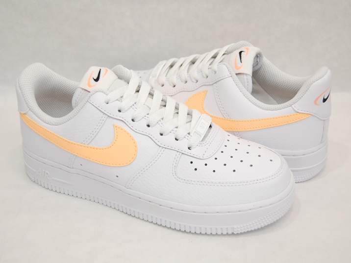 こちらの商品は、ウィメンズのサイズ展開で、つくりが少し小さいので0.5〜1センチ上のサイズをお勧めいたします。(例 24.5センチを履かれる方でしたら、25〜25.5センチをご注文いただくことをオススメします。) 箱付き、新品(未使用)です。 NIKE (ナイキ) の wmns air force 1 07 (ウィメンズ エアフォースワン 07) です。 エアフォースワンの限定カラー。 ホワイトレザーがベースのアッパーです。 ライトオレンジのスウォッシュです。 |