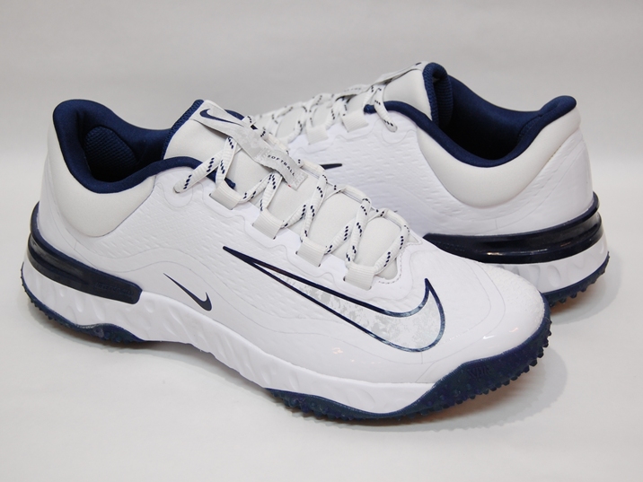 こちらの商品は、ウィメンズのサイズ展開で、つくりが少し小さいので0.5〜1センチ上のサイズをお勧めいたします。(例 24.5センチを履かれる方でしたら、25〜25.5センチをご注文いただくことをオススメします。) 箱付き、新品(未使用)です。 NIKE (ナイキ) の Wmns Alpha Huarache Elite 4 Turf (ウィメンズ アルファ ハラチ エリート 4 ターフ) です。 リニューフォームミッドソール採用のベースボール及びソフトボールのトレーニングシューズ。 通気性のあるシンセティック素材のアッパーです。 ホワイトにネイビーのカラーリングです。 |