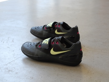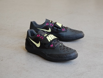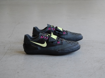 箱付き、新品(未使用)です。 NIKE (ナイキ) の Zoom Rotational 6 (ズーム ローテーショナル 6) です。 砲丸投 ハンマー投 円盤投 各種スローイング競技用モデル、ズーム ローテーショナル 6。 シンセティック素材のアッパーです。 ヴォルトイエローとピンクがアクセントのカラーリングです。 |