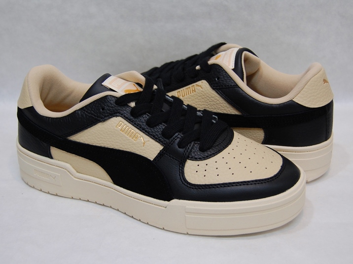 箱付き、新品(未使用)です。 PUMA (プーマ) の Ca Pro OW (カリフォルニア プロ OW) です。 カリフォルニアのアップデートモデルで、限定カラーバージョン。 レザーがベースのアッパーです。 ベージュにブラックのカラーリングです。 |