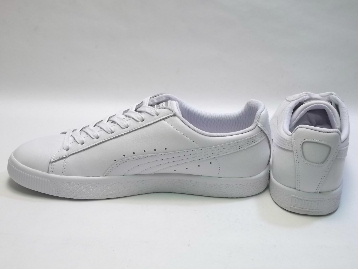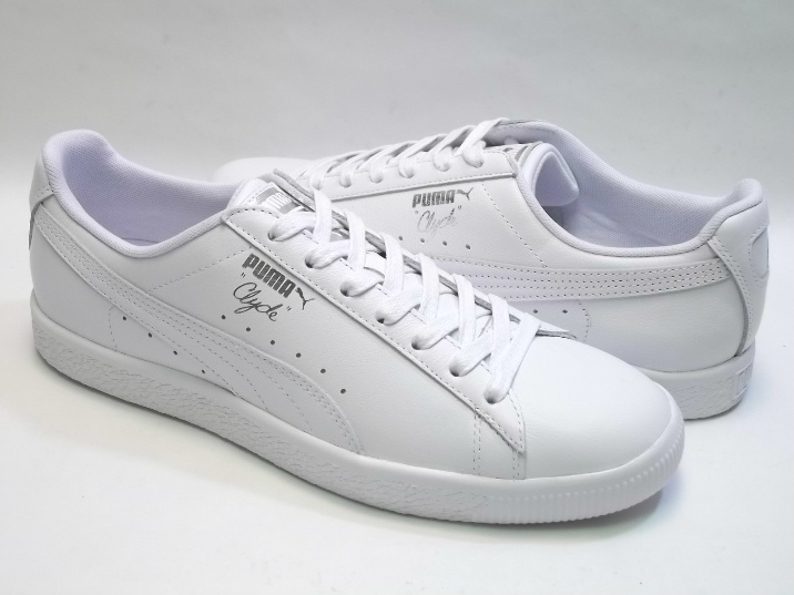 箱付き、新品(未使用)です。 PUMA (プーマ) の clyde core l foil (クライド コア レザー フォイル) です。 クラシカルなクライドの限定バージョン。 ホワイトのレザーをアッパーに使用しています。 オールホワイトに、シルバーのアクセントでいい感じです。 |