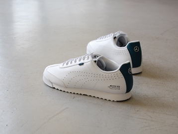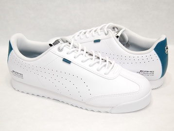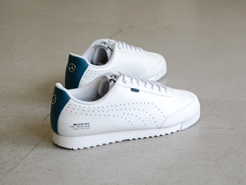 箱付き、新品(未使用)です。 PUMA (プーマ) の Mercedes APF1 Roma Via Perf (メルセデス APF1 ローマ ヴィア パーフ) です。 定番モデルのローマをベースにした、メルセデスベンツとのコラボモデル。 ホワイトのシンセティックレザーがベースのアッパーです。 ベンツのエンブレムが光ってます。 |