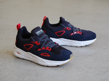 箱付き、新品(未使用)です。 PUMA (プーマ) の rbr trc blaze (レッドブルレーシング トライノミック ブレイズ) です。 クッション性抜群な TRINOMIC (トライノミック) 搭載のブレイズで、RED BULL RACING モデル。 シンセティックレザー、スエード、ナイロンメッシュとのコンビアッパーです。 脱ぎ履きの容易なスリッポン構造で、ドットパターンのシューレースになってます。 |