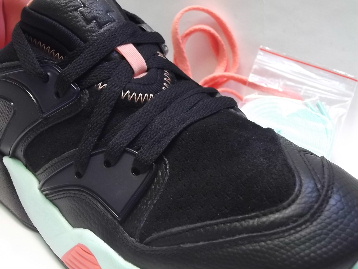 現在庫商品中、US10インチの商品は、画像中の最下右の画像のように、ライムの靴ヒモに少し汚れがございます。 以上の点、どうかご了承の程宜しくお願いいたします。 箱付き、新品(未使用)です。 アメリカの PUMA(プーマ) から店舗限定展開で登場した blaze of glory pd(ブレイズ・オブ・グローリー・ピンクドルフィン) です。 LAの新生ブランド PINK DOLPHIN(ピンクドルフィン) とのコラボレーションモデルです。 ブラックのレザーとスエード、ナイロンメッシュとのコンビアッパーです。 ピンクドルフィンらしい、ピンクとライムの綺麗なカラーリングです。 ブラックとピンク、ライムの靴ヒモ、3セットが付属いたします。 スペシャルボックス仕様です。 |