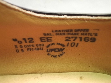 1990年のアメリカ製、箱付き、デッドストック(未使用)です。 RED WING(レッドウィング)の 101 のオールドモデルです。 シンプルなポストマンシューズです。 タグは"MADE IN USA"入りのプリント羽タグです。 アッパーは、ブラックのスムースレザーです。 ソールは、ブラックのフラットクッションソールです。 |