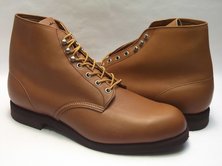 1977年のアメリカ製、箱付き、デッドストック(未使用)です。 RED WING(レッドウィング)の 2126 のオールドモデルです。 シンプルなプレーン・トウのレースアップ・ワークブーツです。 スチールトウではありません。 タグは"MADE IN USA"入りのプリント羽タグです。 ブラウンのレザーをアッパーに使用しています。 アウトソールは、ラバーのクッション・ソールです。 全高は7インチ、約18センチです。 |