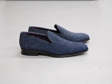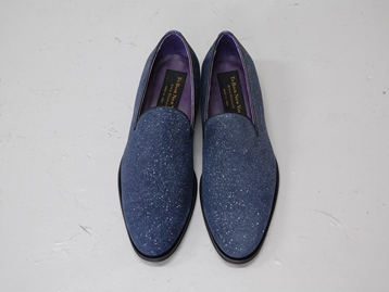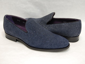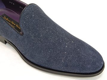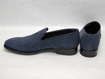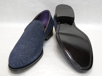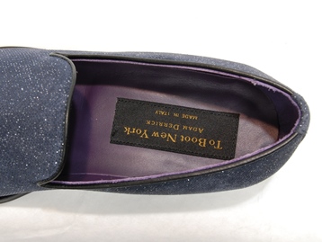 イタリア製、箱付き、新品(未使用)です。 アメリカの TO BOOT NEW YORK (トゥブート ニューヨーク) の RUMBLE (ランブル) です。 至ってシンプルなローファー。 アッパーは、所々光で反射する加工を施したネイビーのレザーです。 アウトソールはレザーです。 アッパーがキラキラと光って華やかです。 |