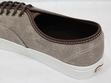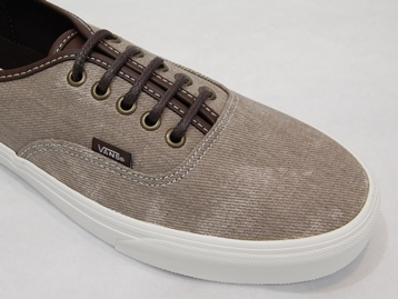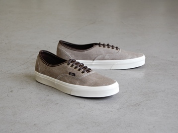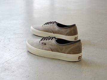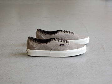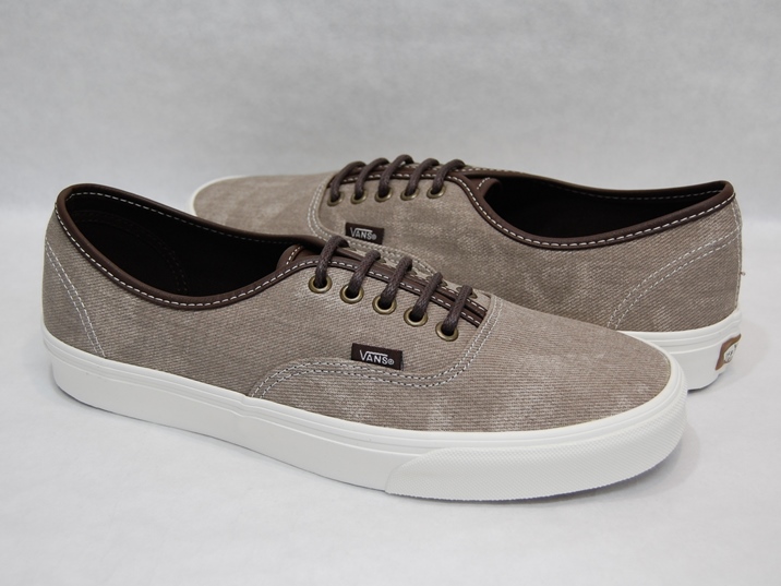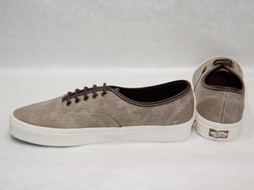 箱付き、新品(未使用)です。 VANS (バンズ) の AUTHENTIC (オーセンティック) です。 シンプルなクラシックモデル、オーセンティックの限定キャンバスアンドレザーバージョン。 グレーとブラウンの中間色の色合いのテクスタイルのアッパーです。 タンがレザーになっていて、良い感じの雰囲気です。 |