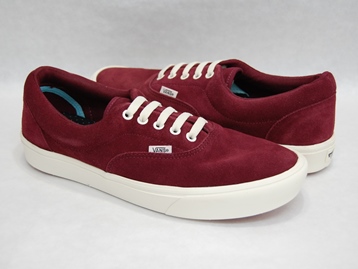箱付き、新品(未使用)です。 VANS (バンズ) の comfycush era (コンフィークッシュ エラ) です。 定番のエラに、"comfycush"ソールを使用したUS企画バージョン。 バーガンディのスエードをアッパーに使用しています。 軽量でクッション性も良く、とても軽快な履き心地です。 |