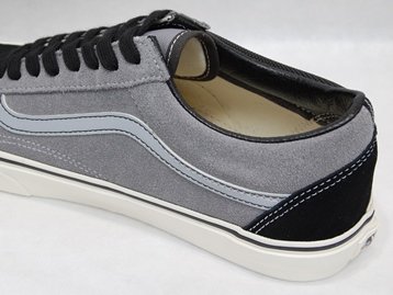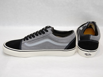 箱付き、新品(未使用)です。 VANS (バンズ) の OLD SKOOL (オールドスクール) です。 US企画のオールドスクールで、マルチアッパーモデル。 アッパー外側はブラックのテクスタイル、内側はグレーのスエードになっています。 ラインはシルバーのリフレクター素材です。 ブラックとオフホワイトの靴ヒモ、2セットが付属いたします。 |