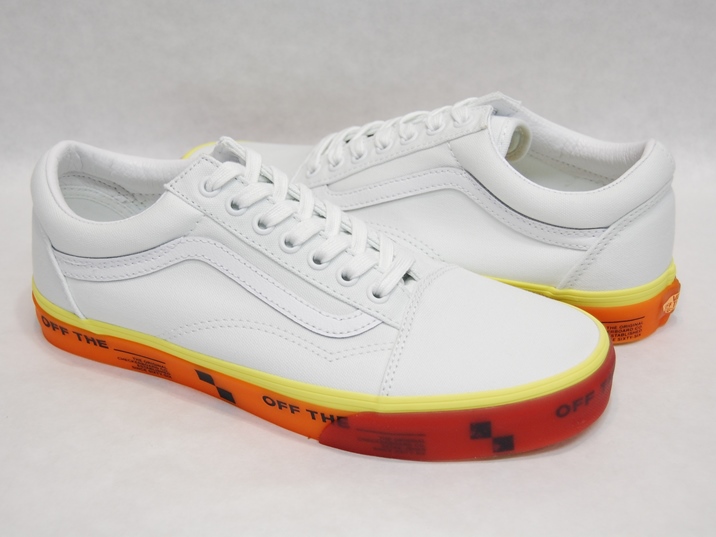| 箱付き、新品(未使用)です。 VANS (バンズ) の OLD SKOOL (オールドスクール) です。 海外限定のオールドスクールで、日本未発売モデル。 ホワイトのキャンバスをアッパーに使用しています。 半透明のオレンジクリアソールで、華のあるいい演出になってます。 |