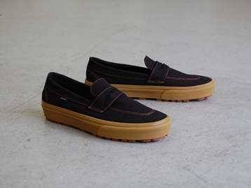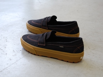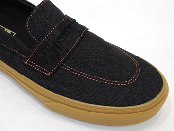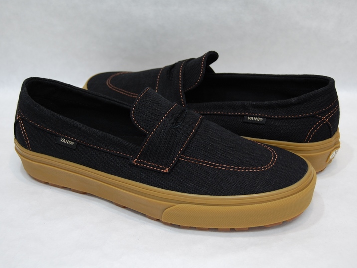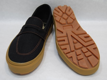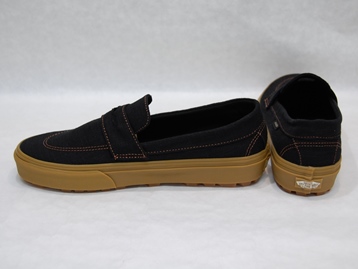 箱付き、新品(未使用)です。 VANS (バンズ) の style 53 (スタイル 53) です。 シンプルなローファースタイルのモデルで、ガムソールバージョン。 ブラックのキャンバス素材のアッパーです。 使い勝手の良いスリッポンタイプです。 |
