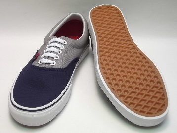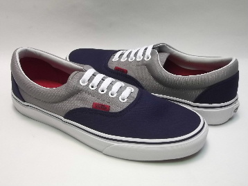 箱付き、新品(未使用)です。 アメリカの VANS(バンズ) から登場した、US企画の ERA(エラ) です。 クラシックなエラのアッパーに、グレーとネイビーのテクスタイルを使用しています。 インナーがレッドで、いい感じのカラーリングです。 |
