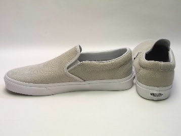 | 箱付き、新品(未使用)です。 アメリカの VANS(バンズ) から登場した、US企画の SLIP-ON(スリッポン) です。 クラシカルなスリッポンのアッパーに、小さなスネークパターン加工を施したレザーをアッパーに使用しています。 オフホワイトにも見えるアッパーにホワイトソールのコンビで、いい雰囲気です。 |