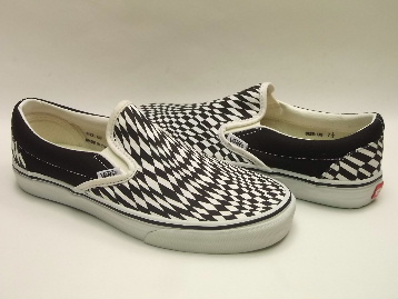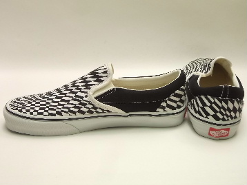 箱付き、新品のデッドストック(未使用)です。 アメリカの VANS(バンズ) から登場した、US企画の SLIP-ON(スリッポン) です。 ホワイト・ブラックのワープチェック・プリントを施したキャンバスのアッパーで、サイド部分はブラックのキャンバスです。 最近ではほとんど見かけなくなった、レアなワープチェック柄です。 |